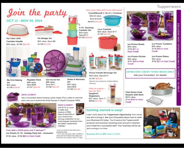 Let me know if there is anything that I can help you with, whether it is on the mid month brochure or the quarterly catalog. The Fall/Holiday 2014 catalog ends on Dec 26th … so if there is something that you want from there – don’t wait. I understand there are once again items that will not make it into the Winter/Spring 2015 catalog – but I haven’t seen the details yet. Message me / Email me if I can help you with something Tupperware related … we can even get you set up to do a Facebook or Online Party to get the hostess bonuses – talk to me and I will explain!